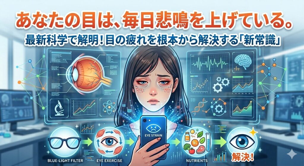 私たちの日常に潜む健康の謎を最新科学で解明し、今日から使えるライフハックを届け続けています。食・健康・生活のあらゆるテーマを大実験・大調査でとことん掘り下げる。今回は、現代人が避けて通れない問題、「デジタル眼精疲労(デジタル目疲れ)」をテーマに、科学的な視点からわかりやすく解説します。